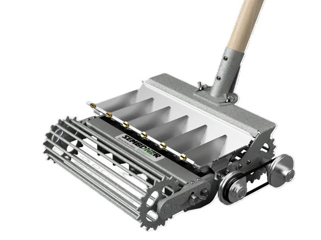 Ručně vedený šestiřádkový secí stroj pro zahradníky a hobby zahrádkáře, kteří chtějí dosáhnout profesionálních výsledků.